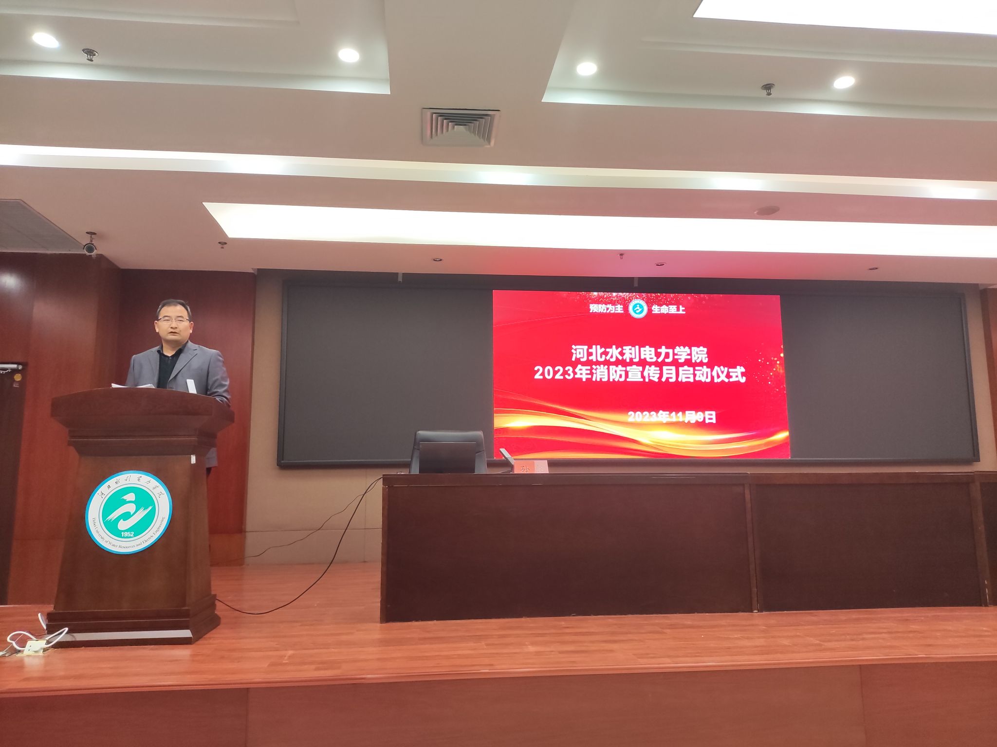 11月9日下午,我校在学术报告厅举行2023年消防宣传月启动仪式,启动仪式由安全工作处处长欧仁辉主持,安全处、后勤处、学生处、教务处、团委、高新区校区管委会教职工代表、八系辅导员及学生代表共200余人参加。首先,欧仁辉传达部署了《威客电竞(vk·game)·电子竞技赛事官网,2023年消防宣传月活动方案》;随后,沧州市消防救援支队新闻宣传科科长孙铭结合各类火灾案例为师生开展讲座,他对如何预防、杜绝可能引起消防事故的内患外患、个人面对突发火灾事故应如何进行报警和救灾逃生等方面进行了全面的讲解,...