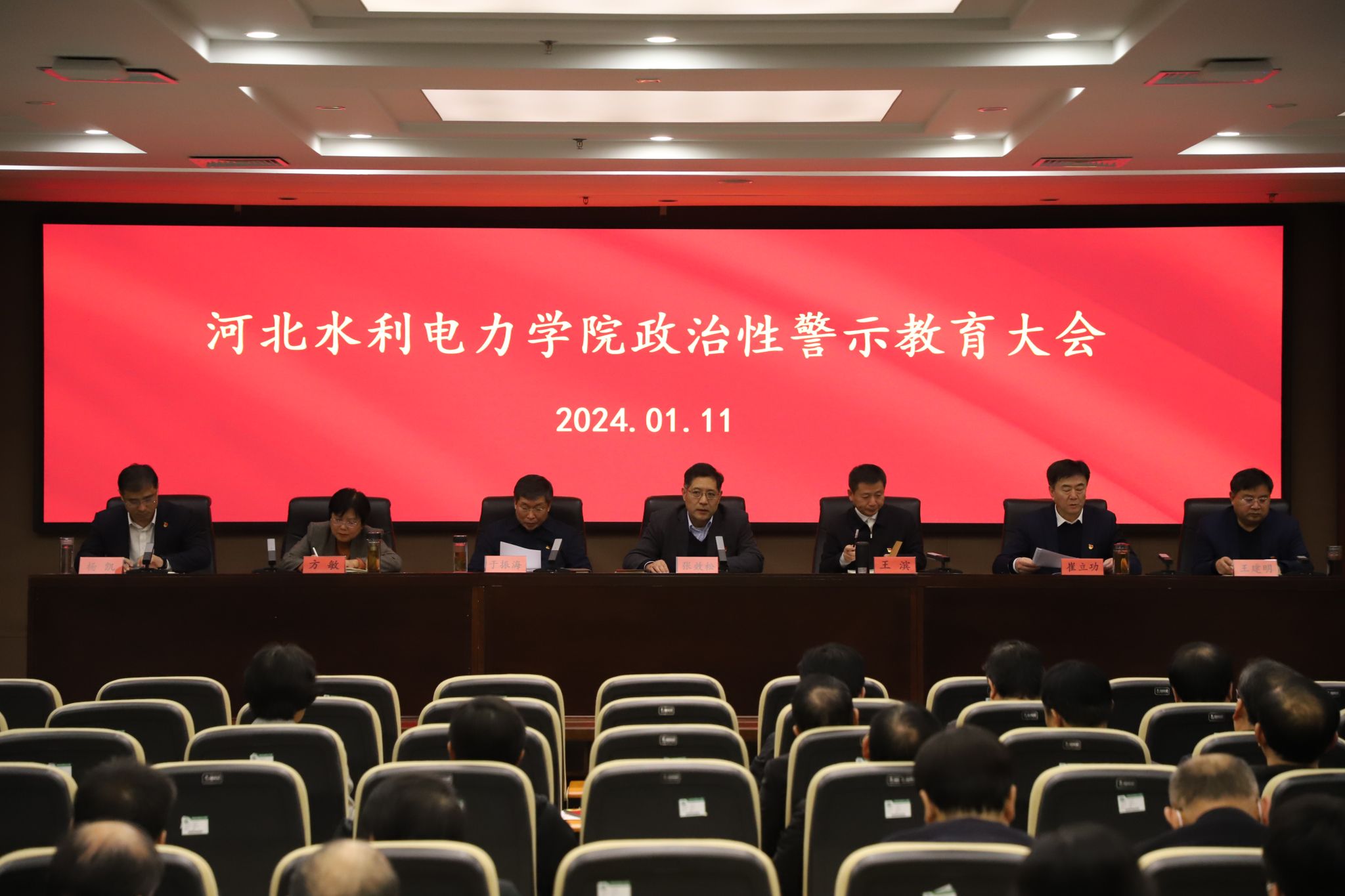 为深入学习贯彻习近平总书记重要指示精神和中央、省委决策部署,巩固拓展主题教育成果,充分发挥典型案例警示教育震慑作用,以违纪违法典型案例为反面教材,严明政治纪律、政治规矩,以案示警、以案明纪、以案说法、以案促改,持之以恒推动全面从严治党向纵深发展,扎实营造学校风清气正的政治生态和育人环境,1月11日上午,我校在弘文守正楼9楼报告厅召开政治性警示教育大会。全体校领导班子成员及正科职以上干部参加了会议。会议由校领导王滨主持。