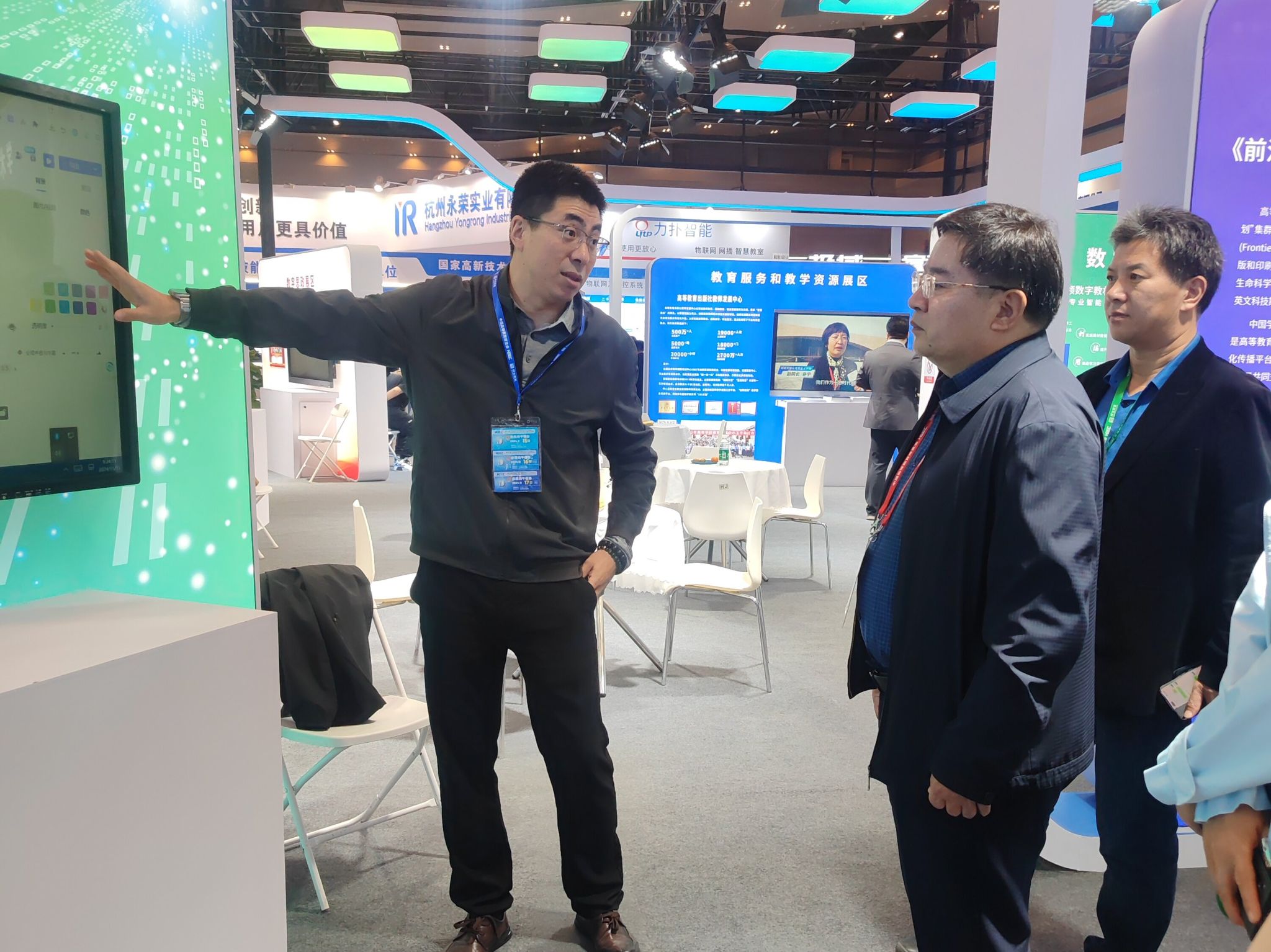 博览会期间,王建明一行逐一参观了信息化和智慧教育展区、实训机电设备展区、实验室和科研仪器设备展区以及高校和人才专区的实物展示和现场展演,内容涵盖人工智能系统、智慧校园、智慧教室、教学设备等多个领域,与参展单位进行了深入交流,详细了解AI智慧技术、大数据、机器人、无人机等高校发展的最新成果。