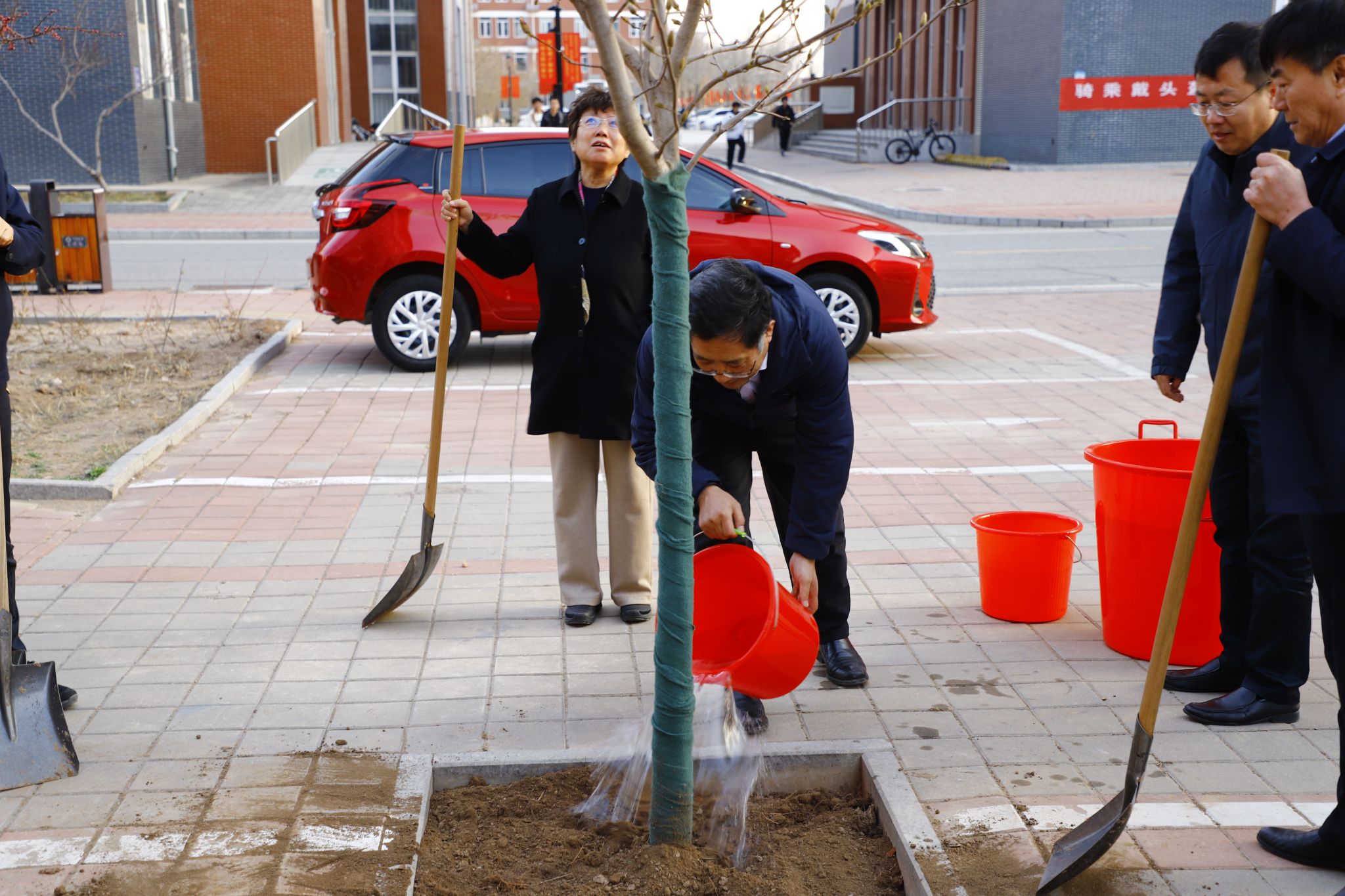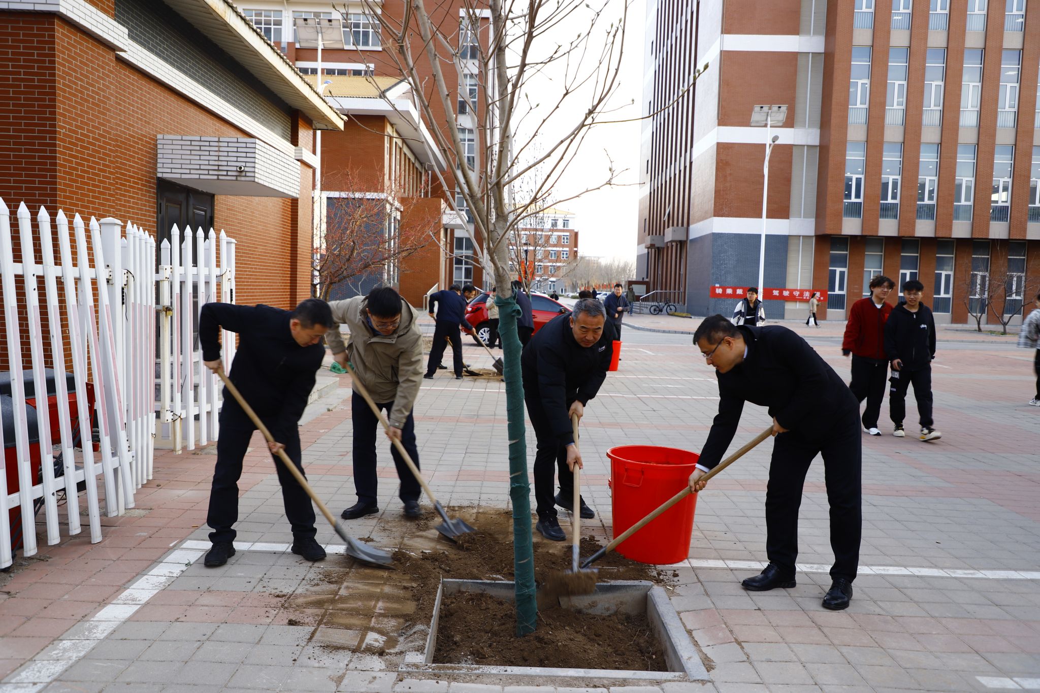 【“三风”建设在行动】亲手栽下玉兰树,树人立木美校园——校领导带头开展植树活动