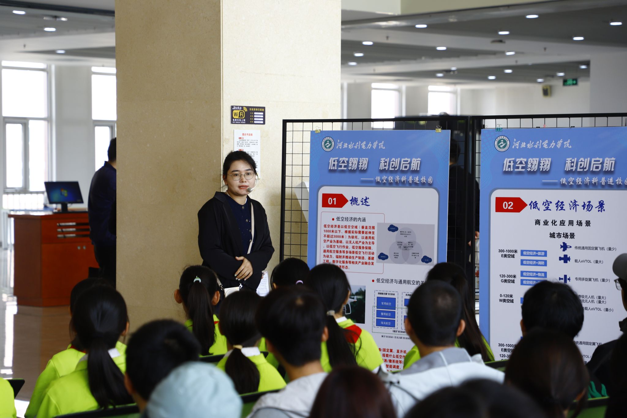 为积极响应2025年“中国航天日”主题活动号召,4月17日上午,我校于图书馆举办了“低空翱翔,科创启航”主题科普宣传活动,聚焦低空经济领域,通过技术赋能与场景化体验相结合的方式,全方位、多角度呈现低空经济的战略价值与创新活力。副校长董志良,沧州市招商引资局等相关单位领导出席活动,上海路小学、交通工程系师生及科技处工作人员近二百人参与此次活动。活动由科技处处长蓝清主持。