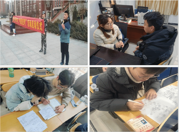 12月初学生处下发《关于加强期末考试考风考纪教育的通知》统一思想严明考风考纪教育工作要求,各系召专项会议周密部署,加强学业帮扶和考试过程监督检查,引导学生树立正确的考试观念。各班密切关注学业困难学生状况,通过心理疏导和原因分析,实施分类指导;组织学生骨干与学业困难学生结成帮扶对子,提供学习方法指导和学习辅导;开展学生党员、学生干部考试中主动亮明身份活动;发布“诚信考试倡议书”并组织学生签署“诚信考试承诺书”。
