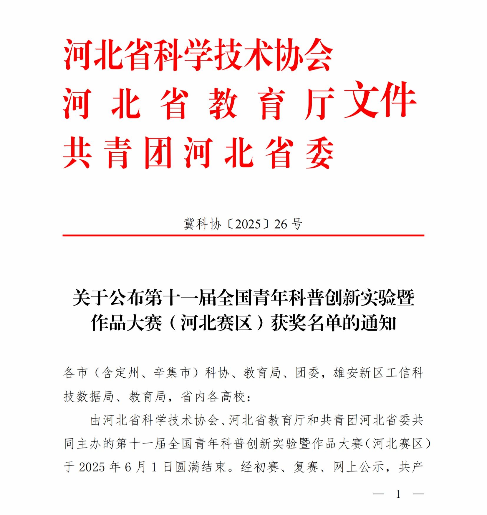 喜报|我校学子在第十一届全国青年科普创新实验暨作品大赛(河北赛区)比赛中喜获佳绩